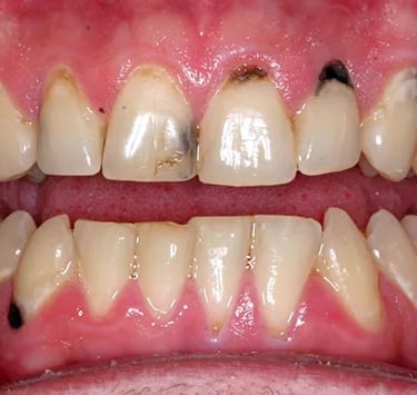 Răng đổi màu (ngà sang vàng hoặc xám).